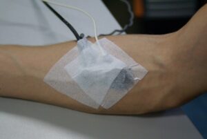 However, when taking accurate venous samples to determine unutilised excess part of oxygen delivery, it must be seriously considered that the blood sample must be taken as close as possible to the muscle under observation. Therefore, the venous sampling catheters can be placed accordingly. Our best current limit is the classic venous blood sampling via a forearm catheter, which is far from our final goal: arterial and venous blood sampling from the leg.